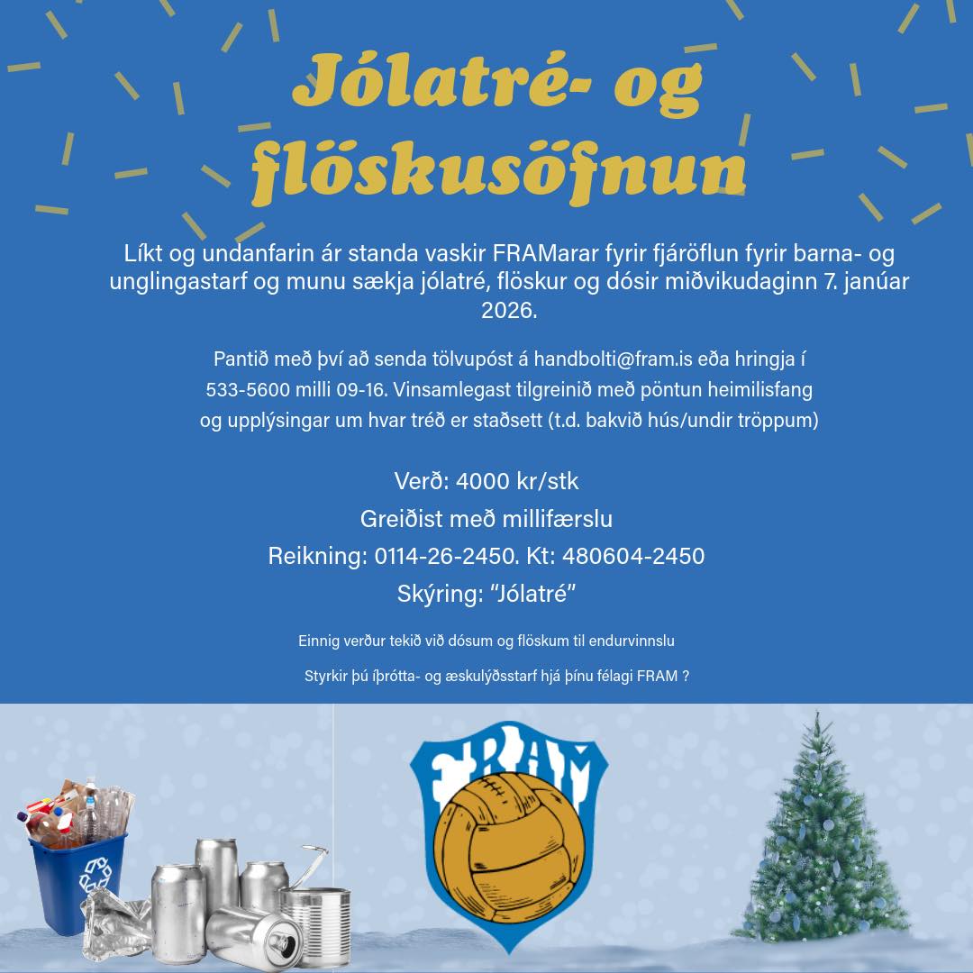 Panta þarf jólatré með því að senda okkur póst á handbolti@fram.is og leggja inn á 0114-26-2450 kt: 480604-2450